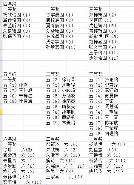 二等奖一4、一5、一11 二10、二3、二4、二6