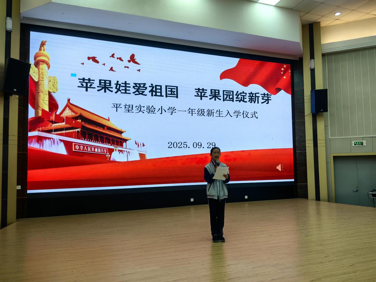 “我是幸福的苹果娃! ……”全体新生举起右拳,在国旗下庄严宣誓。铿锵的誓言在报告厅上空回荡,彰显着孩子们争做优秀小学生的决心。
