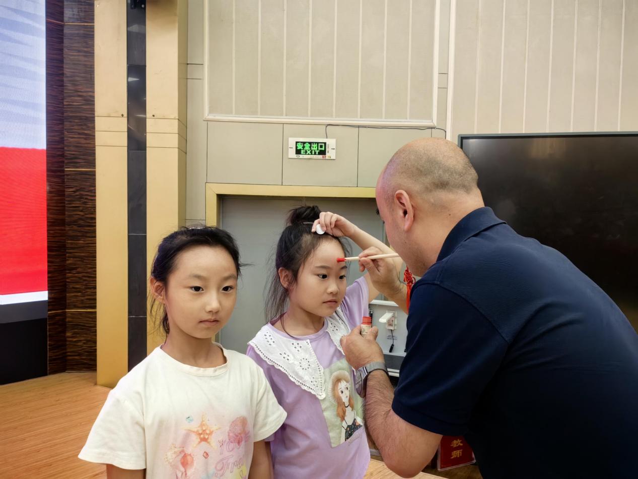 在庄重的点朱砂环节,俞书记和黄校长为每班选出的学生代表点朱砂,寓意开启智慧,目明心亮。随后,各班班主任为班级里的每一位孩子点上朱砂,寄托着老师对孩子们的美好祝愿。