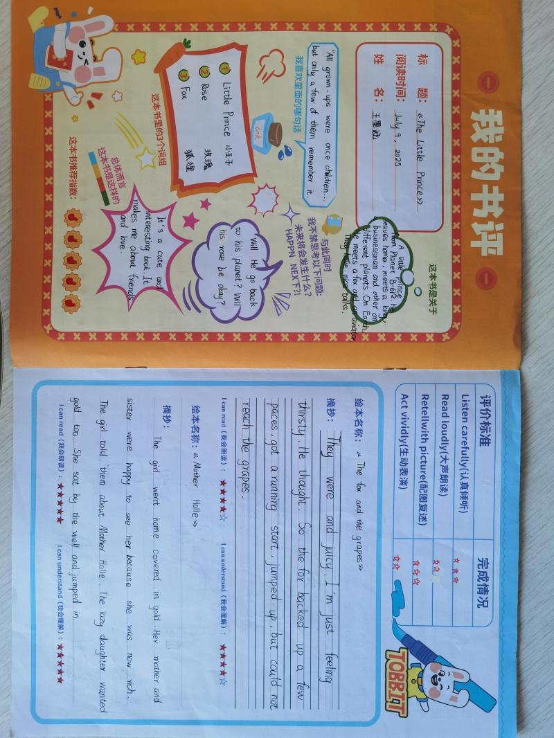 这个暑假,孩子们认真填写每一份阅读记录,用文字和感悟,留下了阅读的痕迹。这些阅读记录,不仅是孩子暑期阅读的 “成绩单”,更是他们未来回忆时,一份珍贵的 “童年礼物”。期待未来能看到更多孩子在阅读中绽放光芒!