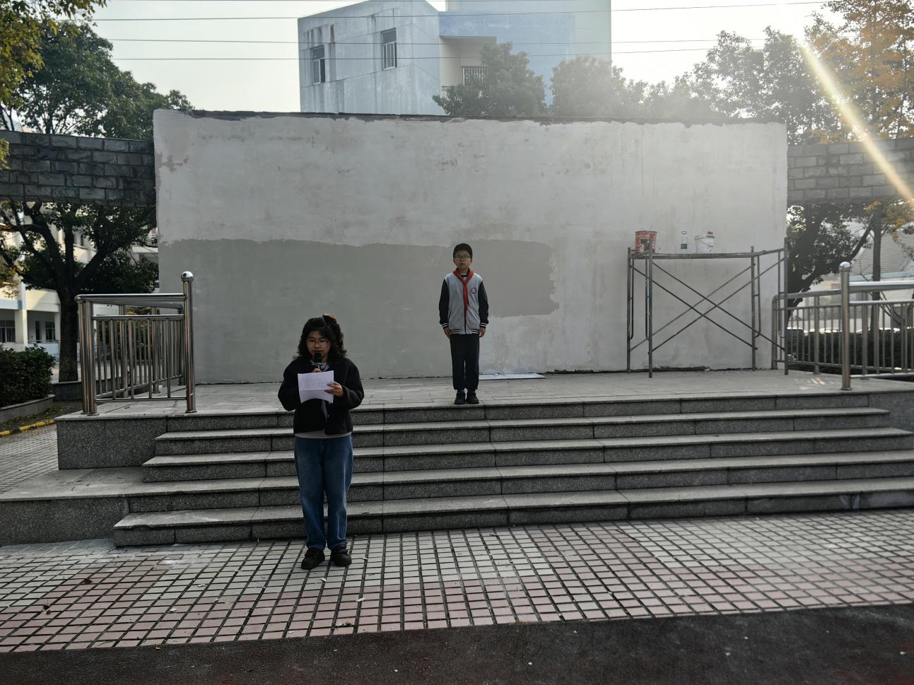 首先,翁燕芳老师进行国旗下讲话。主题是“冬季安全教育”,希望同学们从自身做起,共同营造一个安全、和谐的校园环境。愿大家都能度过一个平安、快乐的冬季!