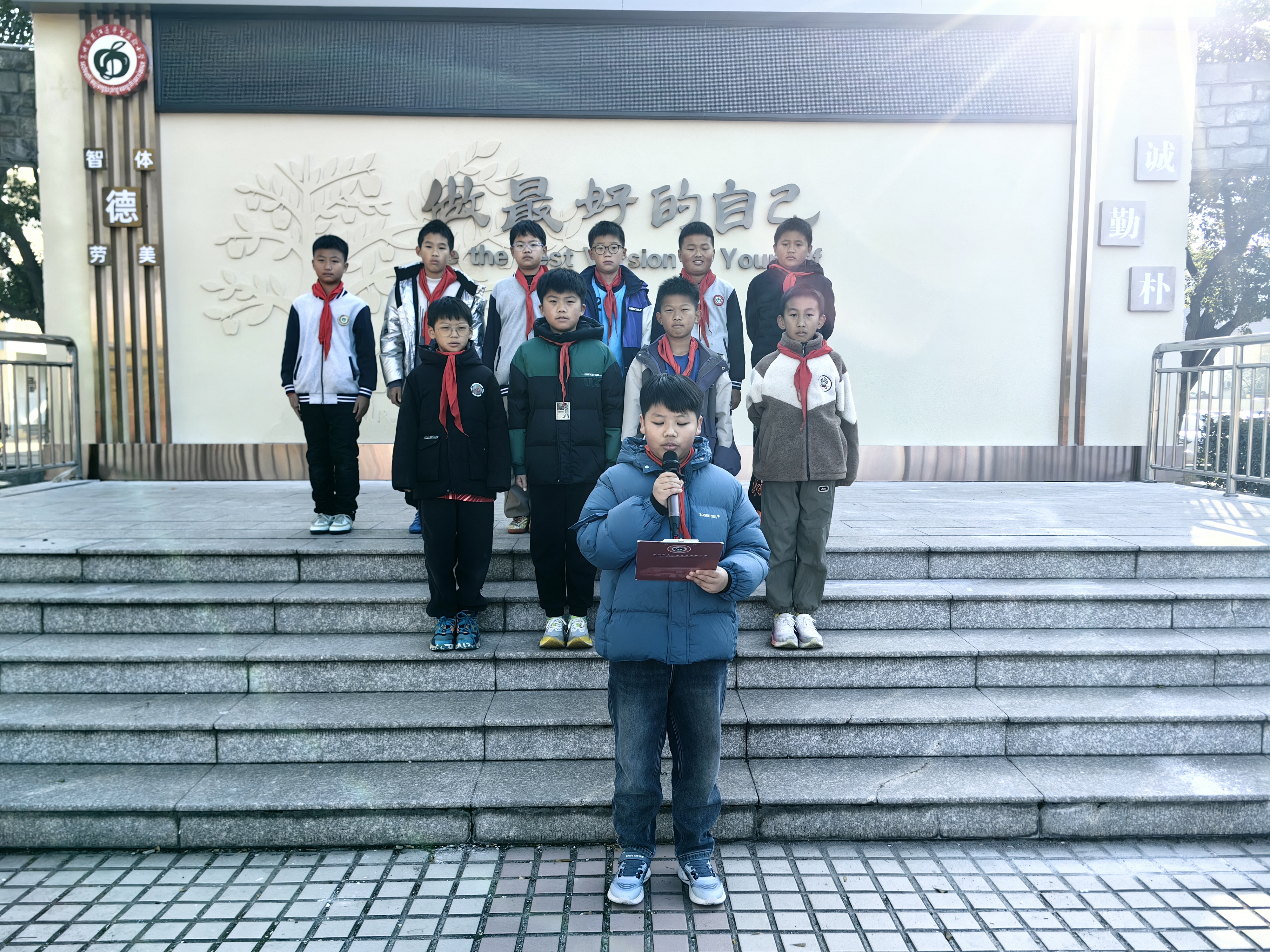 首先,黄老师进行国旗下讲话。主题是“冬至大如年,温情暖寒冬”,让我们将这份感悟化为行动:多一份对家人的体贴,多一句对老师的问候,多一次对同学的援手。用我们的善意和努力,共同温暖这个冬天,照亮前行之路。